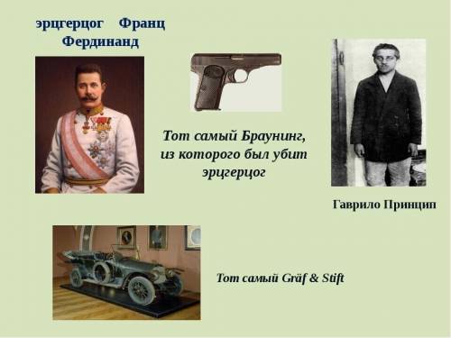 В праздник Видовдан (Видов День) 19-летний гимназист Гаврило Принцип застрелил насмерть двумя меткими выстрелами наследника австро-венгерского престола и его морганатическую супругу. И это стало поводом к Первой мировой войне.