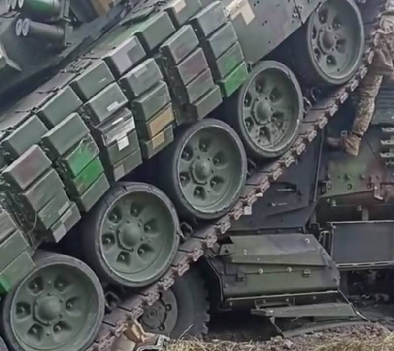 Танк ВСУ после атаки БПЛА «Ланцет» буквально «запрыгнул» на бронеавтомобиль американского производства