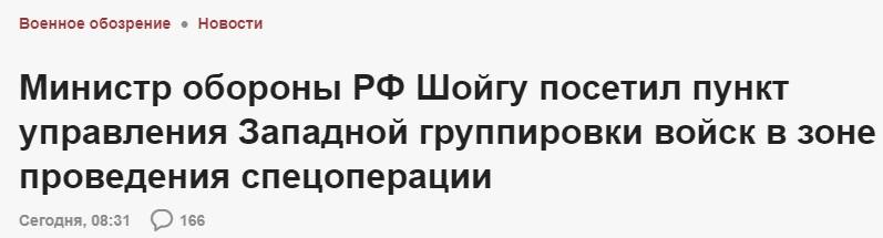 В Минобороны сообщают, что Шойгу провел совещание с командованием группировки, приказав и далее осуществлять активное ведение разведки позиций и действий противника. Министр похвалил Западную группировку войск за эффективные действия по уничижению военной техники, вооружений и личного состава противника.