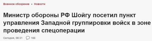 Министр обороны РФ Шойгу посетил пункт управления Западной группировки войск в зоне проведения спецоперации