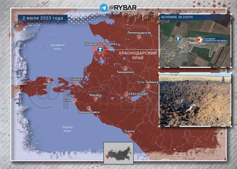 В Приморско-Ахтарске на северо-востоке города расположен военный аэродром, на котором базируется 960-й гвардейский штурмовой авиационный полк из состава 1-й гвардейской смешанной авиадивизии 4-й армии ВВС и ПВО. На вооружении полка стоят штурмовики Су-25СМ3. Возможно, что ВСУ целили в аэродром, в последне время противник наносит удары по тыловой инфраструктуре российской армии, готовясь ко второму этапу контрнаступления.
