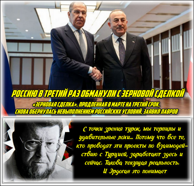 Более того, Украина неоднократно использовала возможности «коридора» в Черном море, открытого для «зерновой сделки», в военных целях, совершала антироссийские провокации и диверсии, тоже используя эти возможности. Поскольку в отношении России договоренности не соблюдались, никаких реальных оснований для продления «зерновой сделки» у Москвы больше нет.