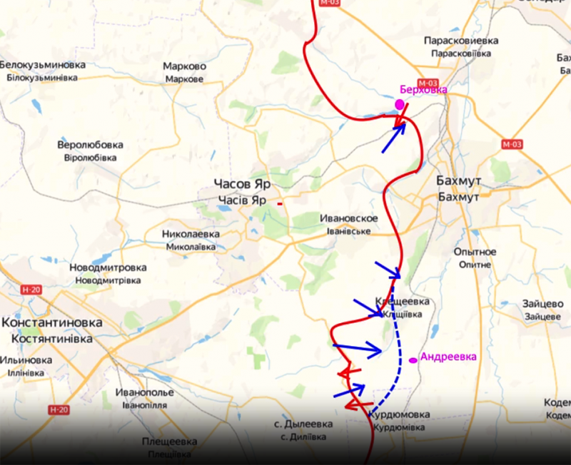 Наиболее ожесточенные бои идут на Артемовском направлении у Клещеевки. Они носят здесь встречный характер. ВСУ пытаются атаковать российские войска, наши бойцы держат оборону и отвечают контратаками. Кроме того, ВС РФ пытались при поддержке артиллерии продвигаться к Ивановскому и контратаковали в районе села Хромово (Артемовское), пытаясь вернуть контроль над ранее утраченными позициями.