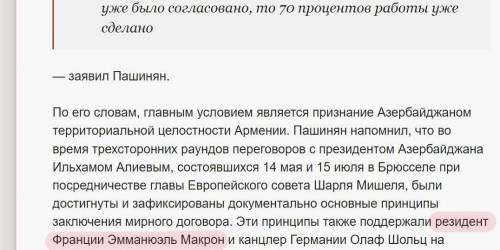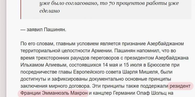 Премьер-министр Армении Никол Пашинян слегка туманно высказался по поводу перспективы заключения мирного договора с Азербайджаном, выступая на Парижском форуме мира. По словам главы армянского правительства, если Баку подтвердит приверженность ранее согласованным принципам, то договор можно считать готовым на семьдесят процентов.