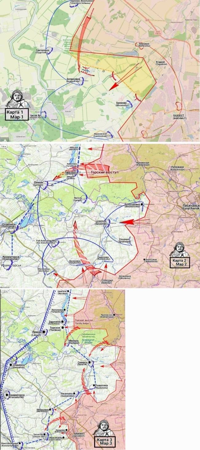 Под Купянском основные боевые действия идут в районе Синьковки, наши сообщают о нанесении серии ударов по позициям 41-й механизированной и 57-й мотопехотной бригад ВСУ, о контратаках со стороны украинской армии данных нет. На Красно-Лиманском тоже без особых перемен, есть продвижение в районе Кременной, наши отразили две контратаки ВСУ, у противника большие потери.