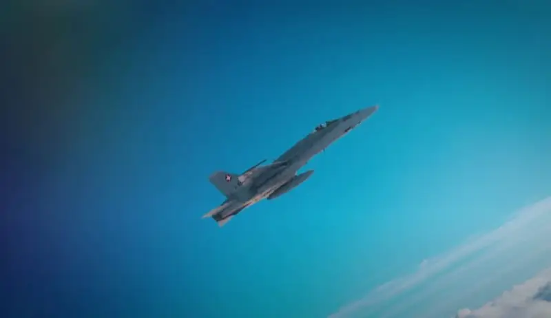 Показаны кадры учений по авиаперехвату с участием F/A-18 Hornet ВВС Швейцарии, за которыми с самолета Airbus A220 наблюдали стажеры