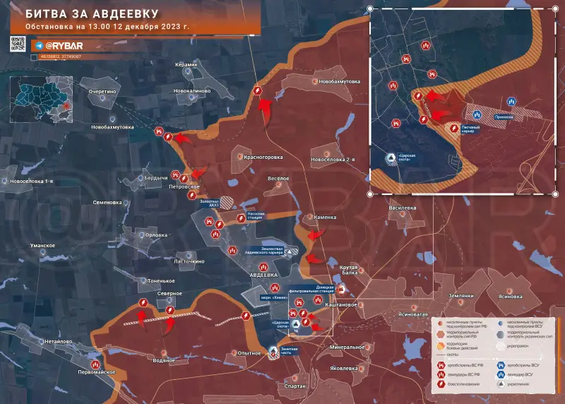 Как сообщают военкоры, подразделения ВС РФ обошли песчаный карьер на территории города, после чего атаковали противника на улице Колосова в южной части Авдеевки. Следовательно, бои идут уже непосредственно в самом городе, а не на его окраинах, что свидетельствует о значительном продвижении российских войск по территории Авдеевского укрепленного района.