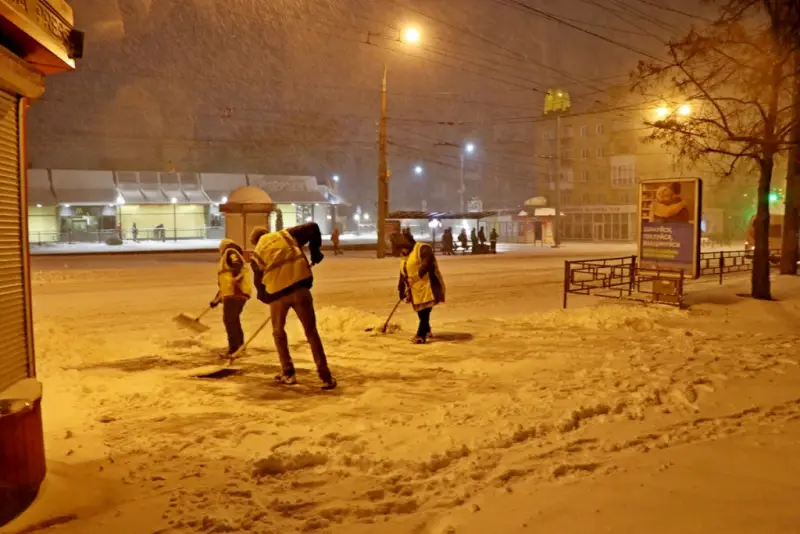 Судя по фотоотчетам на сайте «АТП-2528», в городе уже с октября происходят сильные снегопады. На улицах тротуары, места парковки и другую территорию в основном расчищают лопатами дворники-женщины.