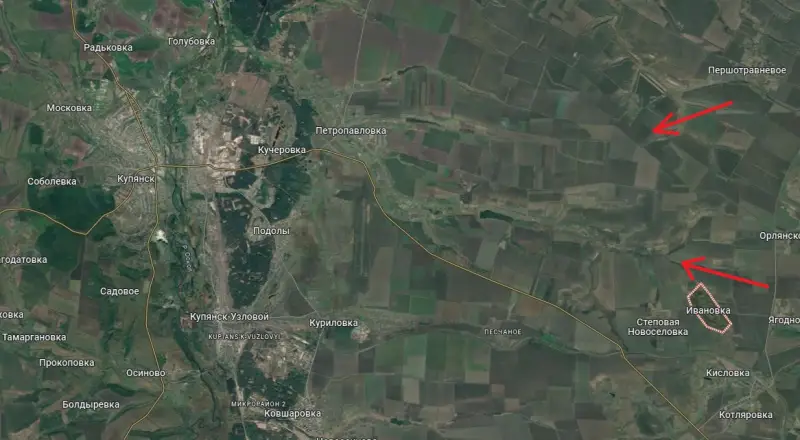 К востоку от Ивановки на Купянском направлении российские войска оттеснили ВСУ с позиций у лесопосадок