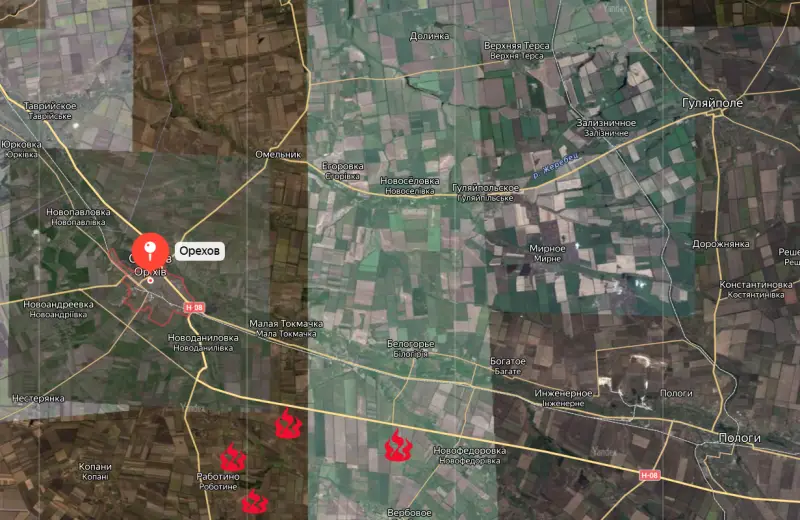На данный момент российские войска обходят Работино с северо-востока, продвигаясь в направлении автомобильной дороги Н-08 (южная транспортная связь Орехов-Пологи).