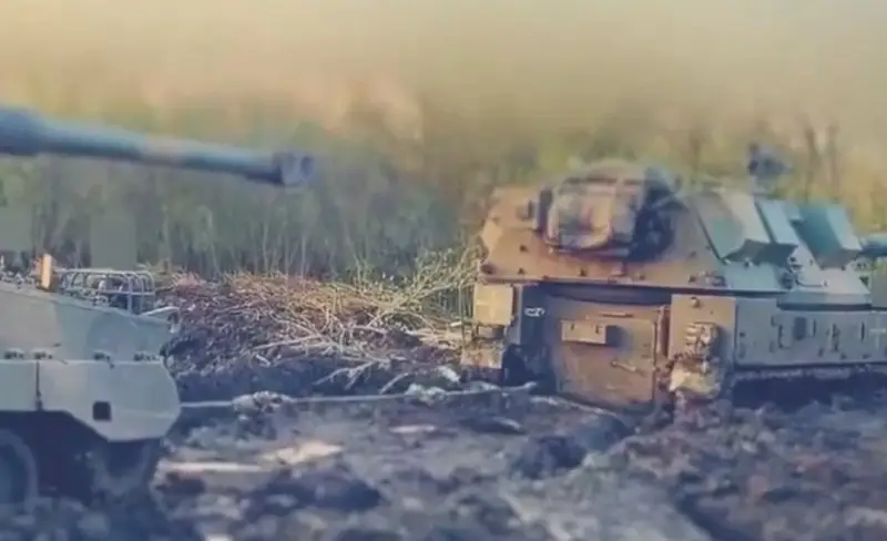 В сети опубликованы кадры, на которых запечатлены безуспешные попытки боевиков киевского режима вызволить завязшие в донбасском черноземе украинские 155-мм САУ AHS Krab польского производства.
