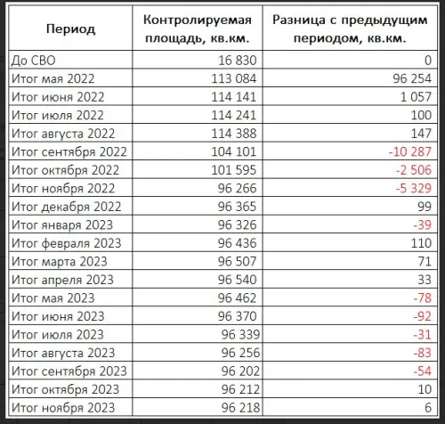 Показатели, казалось бы, скромные, но, во-первых, продвижение на этих участках фронта идёт ежедневно, во-вторых, каждый новый квадратный километр контроля сужает возможности для снабжения и ротации противника.