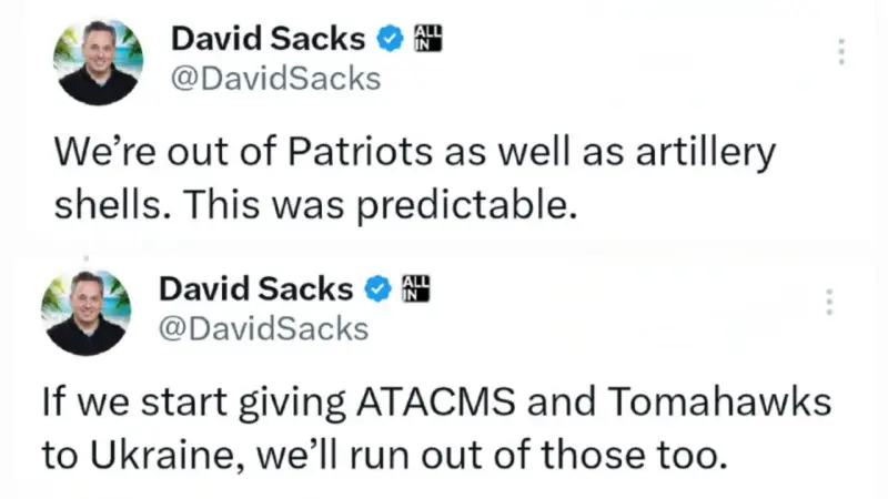 Из-за событий на Украине и постоянной военной помощи киевскому режиму в столь масштабном конфликте, сами Соединенные Штаты Америки начали испытывать проблемы с вооружением и боеприпасами. Об этом ранее сообщали многие американские политики и военные эксперты. Теперь пост на эту тему опубликовал бизнесмен и инвестор Дэвид Сакс.