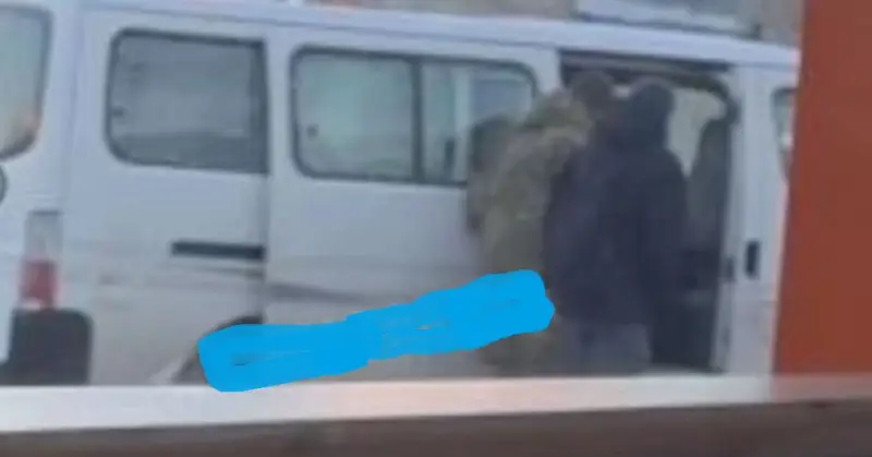На кадрах мы видим, как на остановке общественного транспорта к маршрутному такси подходят люди в военной форме. Это сотрудники территориальных центров комплектования и социальной поддержки ВСУ (ТЦКСП) – украинского аналога российских военных комиссариатов.
