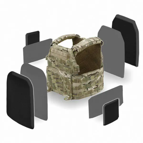 Комплект боевого снаряжения (КБС) "Стрелок" включает в себя бронежилет "Корсет плюс" 5 класса защиты с системой распределения веса, модули дополнительной защиты, набор подсумков в комплектации "Стрелок", рюкзак на 30 литров и транспортировочную сумку.