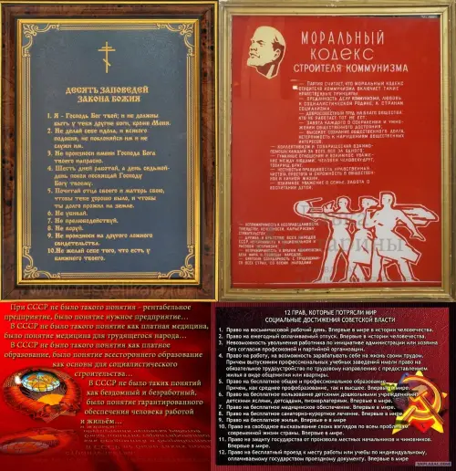 И теперь скажите, что там плохого? Ладно, сделаем реверанс в сторону ненавистников коммунизма и СССР, уберем коммунистическую пропаганду, СССР, но ведь все равно остается главное, то, что делает человека человеком. И сравним этот кодекс с 10 заповедями Божьими. Их тоже даю в полном виде: