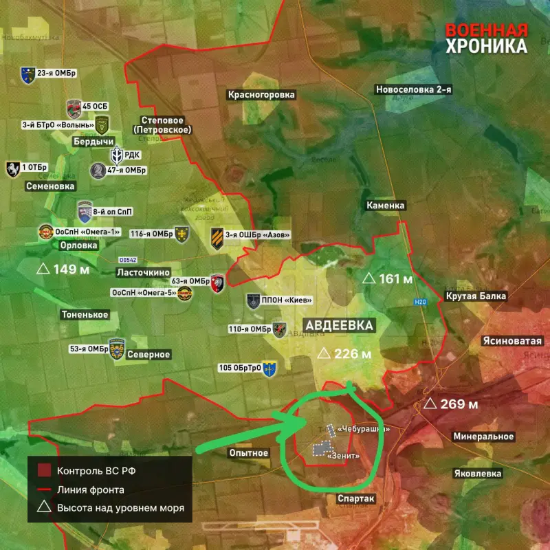 Между тем, стало известно, что злополучная Донецкая фильтровальная станция на востоке Авдеевки перешла по контроль российских войск. Находившиеся там подразделения ВСУ отступили в соседние лесопосадки, но долго там не задержатся, поскольку ВС России наступают вдоль Песчаного карьера. Также имеются сведения о якобы переходе под наш контроль укрепрайона "Чебурашка" в районе уже занятой базы ПВО. Информация не проверенная, возможно, что мы торопимся, но к утру все станет ясным. По крайней мере, противник оттягивает силы к укрепрайону "Химик".