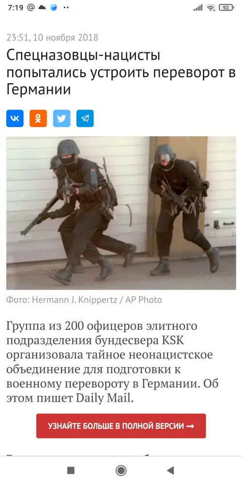 В итоге автор материала, Айнар Кох, пишет, что Берлин нарушил своё обещание, данное при объединении Германии. Автор напомнил, что это обещание (а оно было дано и немцам тоже) состояло в следующем тезисе: никогда с территории Германии не будет исходить угроза в отношении других стран. Если же Германия поставляет оружие Украине, откровенно занимается военным планированием для Украины, в том числе планированием уничтожения российских объектов – это и есть нарушение данного обещания. То есть, сегодня от Германии исходит явная угроза в адрес Российской Федерации.