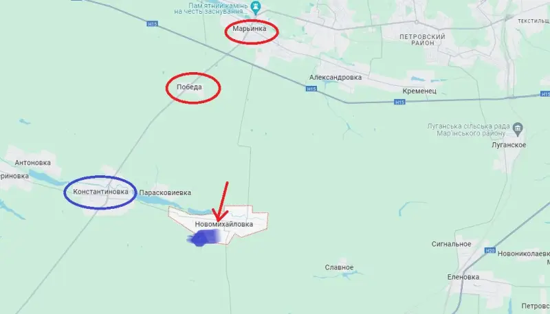 По утверждению украинского военного, в настоящее время российская армия якобы перебрасывает дополнительные резервы в район Новомихайловки. Там сейчас идут ожесточенные бои. В Новомихайловке ВС РФ наступают после освобождения Марьинки и Победы, расположенной к югу от этого населенного пункта.