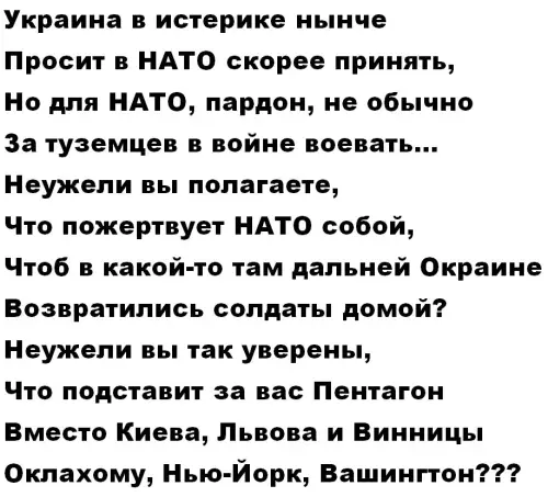 Отвечая на своей странице в одной из западных соцсетей на публикацию в американском издании Foreign Affairs, в которой эксперты Джереми Шапиро и Сэмюэл Чарап предложили киевскому режиму и его западным кураторам подготовить каналы для возможного начала мирных переговоров с Россией.