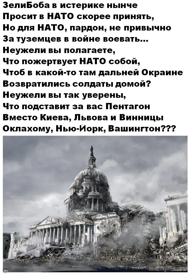 Так, сначала режиму Зеленского доходчиво объясняли, что воюющая страна не может быть принята в НАТО до тех пор, пока конфликт не будет исчерпан. Затем киевским властям и вовсе предложили некие весьма расплывчатые гарантии безопасности, договор о которых, к слову, уже подписан с ФРГ, Великобританией и Францией.