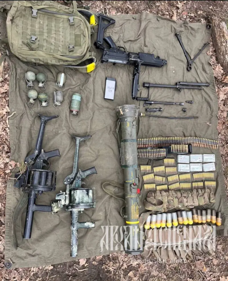 Гранатомёт из ЮАР и пулемёт из США: появился кадр с трофейным оружием уничтоженной ВС РФ группировки проукраинских боевиков