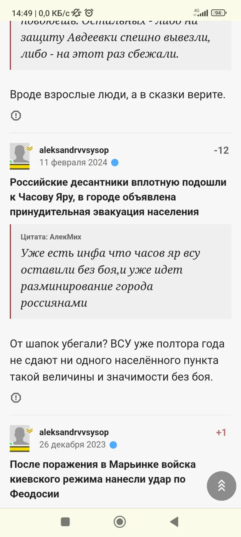 Украинские ресурсы: Российские войска активизировались под Часовым Яром, взяв Ивановское и продвинувшись в Богдановке