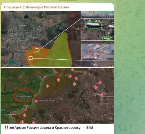Российские военные паблики сообщают об активизации штурма обороны ВСУ в районе города Красногоровка, расположенного в 20 км к западу от Донецка, севернее Марьинки, и в самом населенном пункте. Ранее российские механизированные штурмовые группы вошли в этот населенный пункт как раз со стороны Марьинки и высадили десант по обе стороны от железной дороги, делящей город на две части.