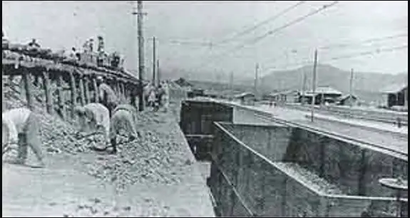 Ну и что же сделали японцы, ворвавшись в Корею? Например, построили электрифицированную железную дорогу в районе Кымгансана. Японская компания «Конгосан Денки Тецудо Кабусики Кайся» в 1924 году открыла электрифицированную железную дорогу протяжённостью 116,6 км, на колее 1435 мм, с напряжением контактной сети 1,5 кВ. Вместе с железной дорогой была построена ГЭС для энергоснабжения, на тот момент с новейшими японскими технологиями, в частности, она была гидроаккумулирующей ГЭС.