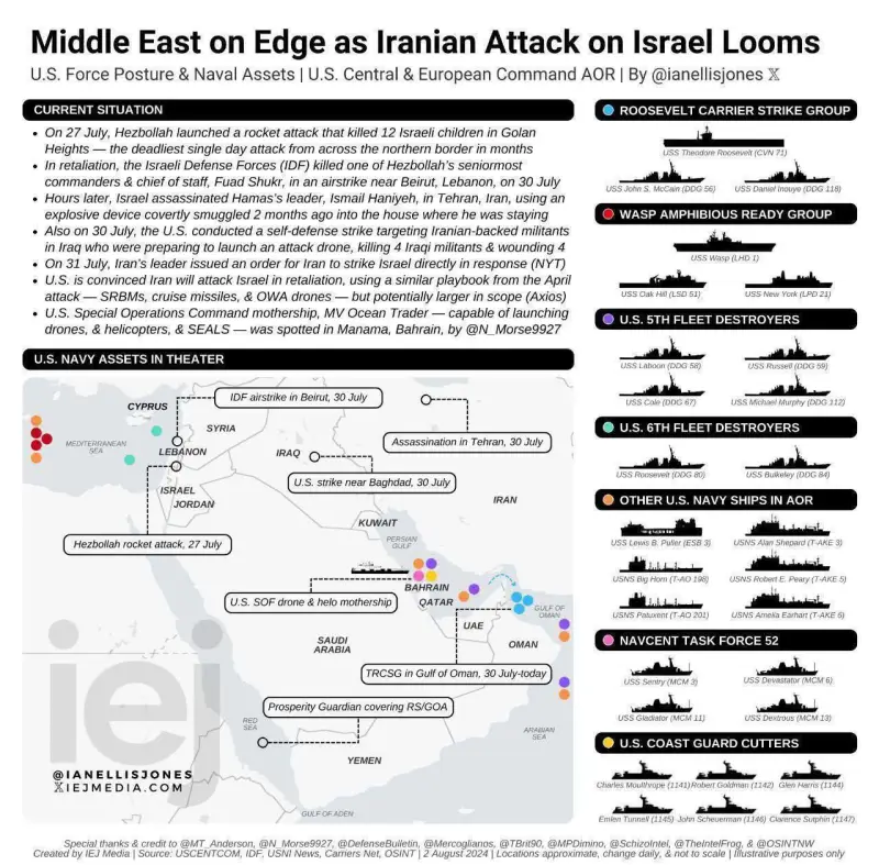 Как стало ранее известно, главный союзник и покровитель Израиля Соединенные Штаты усиливают своё военное присутствие в Средиземном море и на Ближнем Востоке из-за возможных ответных действий Ирана на убийство лидера ХАМАС.