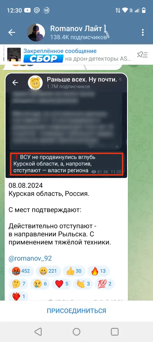 Подтверждают остановку украинского наступления и власти Курской области. Как заявил врио замглавы региона Андрей Белостоцкий, продвижение ВСУ остановлено, за сутки противник не сумел пройти вперед, а кое-где уже откатился назад. Наиболее активные бои идут в Суджанском районе.