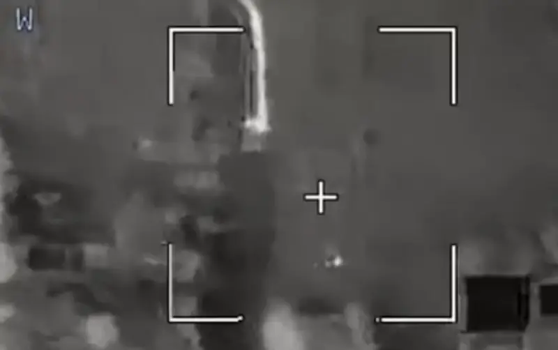 Минобороны опубликовало кадры объективного контроля, на которых можно увидеть момент уничтожения ударом российского барражирующего боеприпаса "Ланцет" САУ украинских оккупантов в приграничном районе Курской области.