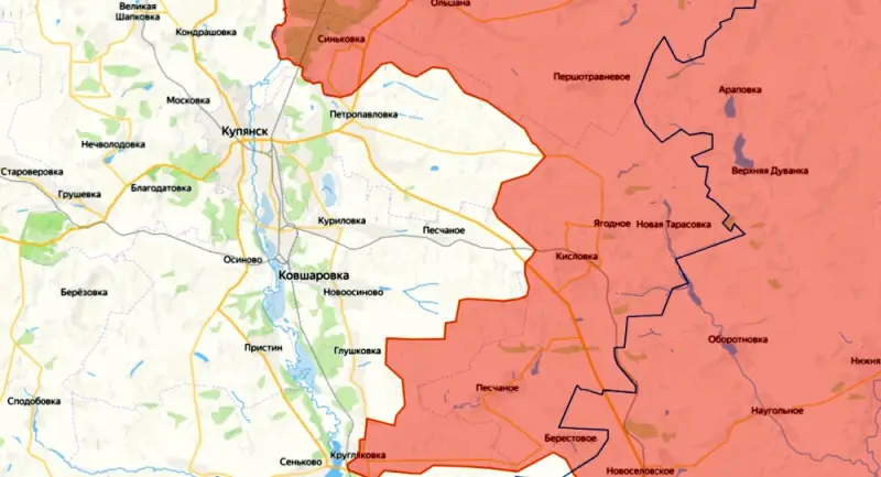 Ближе всего к Купянску наши войска подошли с севера в районе Петропавловки. Ранее сообщалось, что до окраин города от наших передовых частей на этом участке осталось менее трех километров. Есть продвижение ВС РФ и на юго-восточном направлении. Судя по карте боевых действий, противник вскоре может попасть в оперативное окружение в районе Куриловки. Да и сам Купянск, очевидно, берется с флангов в полукольцо.