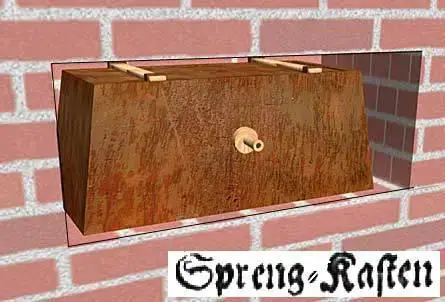 Слева мина из бочонка, внутри которого находится еще один бочонок с порохом и готовые «осколки» в виде металлических ядер и камней. Интересно, что идея эта не пропала даром, а в наши дни приобрела популярность среди террористов, в особенности доморощенных. Только вместо бочонка они берут трехлитровую стеклянную банку, а наполняют её гайками и болтами! Так что тут никто ничего особо нового не придумал! Справа бомба с корпусом из медного шара, обложенного камнями. Причем снаружи она, скорее всего, даже оштукатурена!
