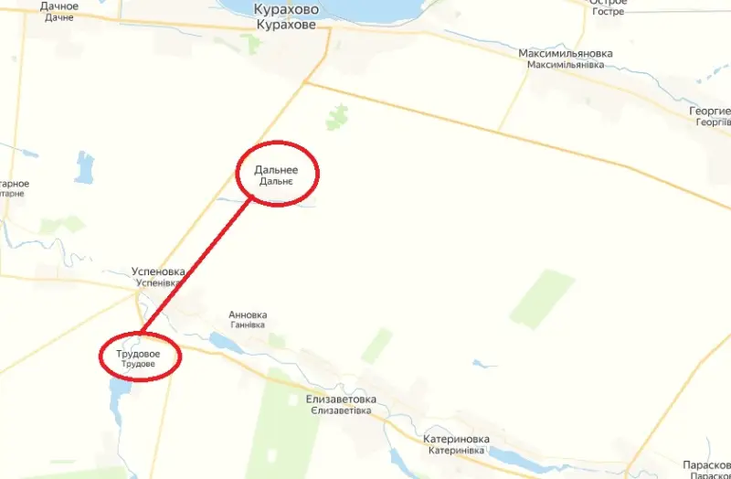 Откровенно сочувствующий киевскому режиму Репке вынужден признать, что на прошлой неделе ВС РФ вошли в село Дальнее в ДНР, после чего сформировавшийся в районе Курахово полукотел оказался рассеченным на две части. К югу от Дальнего несколько сотен военнослужащих ВСУ продолжают удерживать 5-6 небольших сел на берегах реки Сухие Ялы. В настоящее время российские войска полностью заняли Дальнее, а также подошли к селу Трудовое, вследствие чего коридор для возможного выхода ВСУ через села Успеновка и Константинопольское сократился до 5,5 километров.