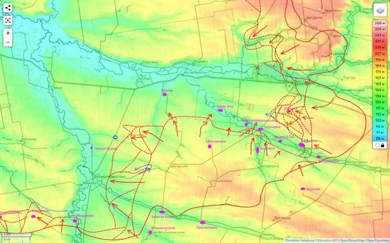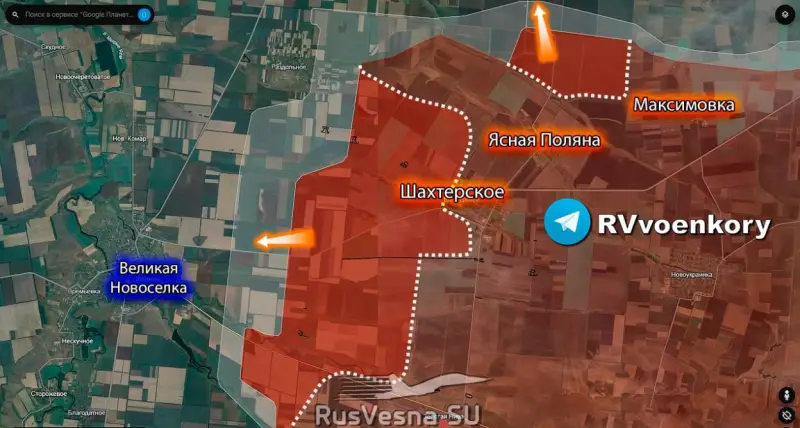 Но российские войска движутся ещё и со стороны ранее освобожденного Ровнополя. Севернее проходит ещё одна дорога на Великую Новоселку. При перерезании этой дороги украинские военные на Времевском выступе окажутся в полном окружении.