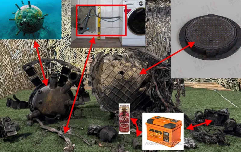 Обгоревшие и раскрошившиеся обломки были разложены на складе в учреждении, где проводится экспертиза оружия. Украинские эксперты изучают эти обломки, чтобы получить представление о российских военных цепочках поставок, производстве и способах разработки контрмер.