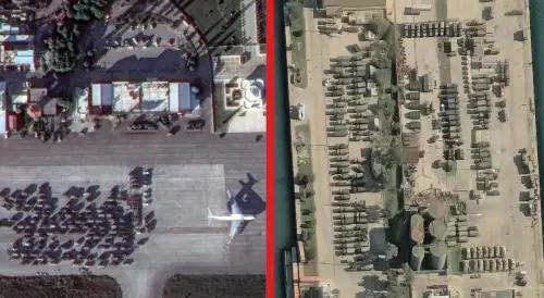 Применив для наблюдения длиннофокусный модуль Daylight Spotter оптико-электронного комплекса MX-20HD, британский противолодочный самолет P-8A Poseidon провожает из сирийского Тартуса большой десантный корабль (БДК) проекта 775 «Александр Шабалин» ВМФ РФ. Британцы внимательно отслеживают все, что происходит на палубе у россиян, которые возвращаются в Балтийск Калининградской области.