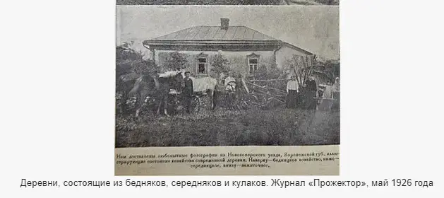 Деревни, состоящие из бедняков, середняков и кулаков. Журнал «Прожектор», май 1926 года