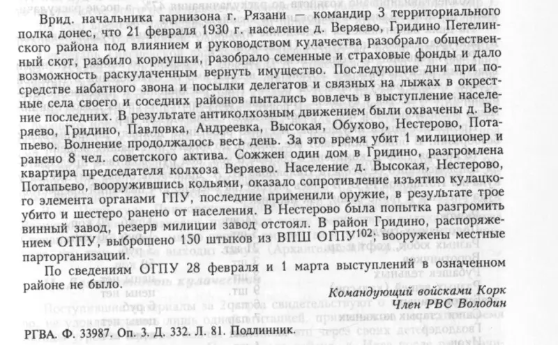 Так, статья Сталина о головокружении вышла 2 марта. А уже 1 марта в Сибири началось крестьянское восстание. Причём в Муромцевском районе против советской власти с оружием в руках поднялись не только зажиточные крестьяне, но даже и беднота, и всё те же самые середняки. Чего требовали и какие лозунги они выдвигали? А вот какие: