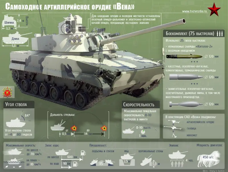 Кроме того, новинка способна десантироваться с военно-транспортных самолетов в полностью боеготовом состоянии. Отмечается, что благодаря вращающейся по кругу башни САО может вести огонь в диапазоне 360 градусов.