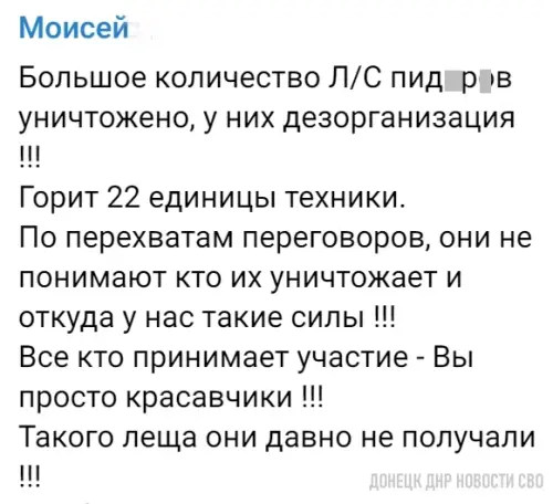 Ситуацию на данном участке фронта для украинской армии вполне можно назвать разгромом. В нем участвуют и другие подразделения ВС России. В частности, уничтожением вражеской бронетехники в районе населенного пункта Уланок активно заняты разведчики 30-го мотострелкового «подмосковного» полка.