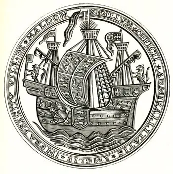 Нельзя не заметить, что корабль 1682 года относится к судам более ранней конструкции, нежели 1600-го, что, скорее всего, связано с желанием (характерном, кстати, для многих – прим. автора) удревнить свою историю. Хотя и корабль, изображённый на печати 1600 года, ну никак к этому времени отнести нельзя. Судя по его архитектуре, это корабль конца XV в., но никак не 1600 года. То есть и тут мы видим желание художника, создававшего печать, показать более старый корабль по сравнению с теми, что в то время могли стоять у причалов Малдона. Налицо явная стилизация, хотя архитектура корабля примерно 1450-1490 гг. показана на печати прекрасно, не говоря уже о расписном парусе, характерном именно для средневековой эпохи.