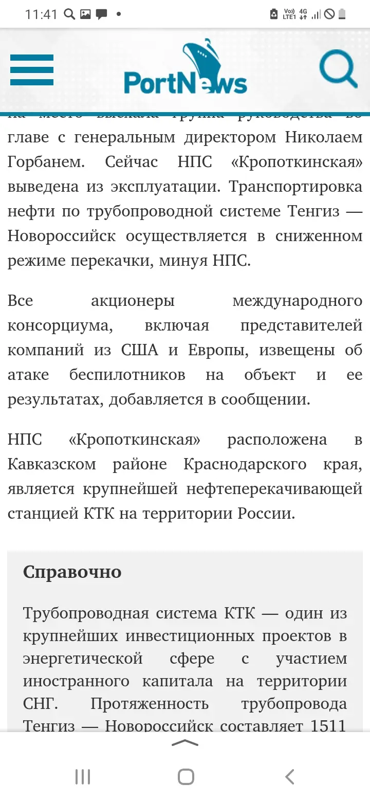 Каспийский трубопроводный консорциум (КТК) вывел из эксплуатации нефтеперекачивающую станцию «Кропоткинская» по причине атаки украинских беспилотников. О сроках восстановления перекачки нефти пока сведений нет.