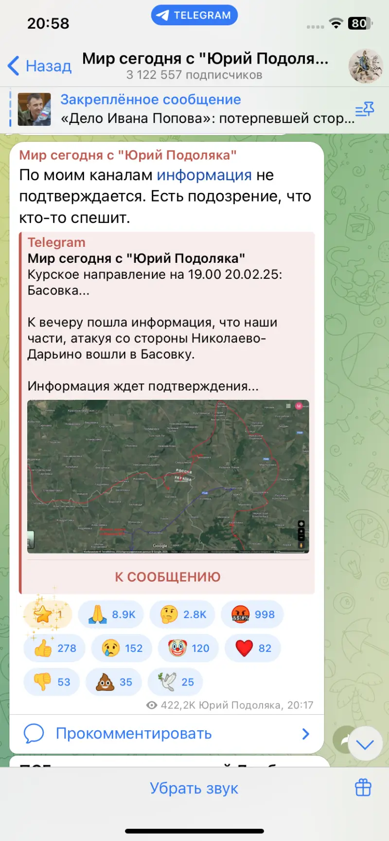Хорошие новости приходят под вечер, вслед за информацией о том, что наши штурмовики вошли в село Новенькое Сумской области, приходит более свежая, в которой говорится, что наши якобы вошли и в Басовку, которая находится дальше Новенького.