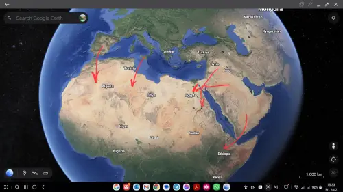 В то время территории Северной, Центральной и Восточной Африки выглядели совершенно не так, как сегодня. Уровень воды в озёрах был выше современного на несколько десятков метров, русла рек также были иными. Озеро Туркана в современной Кении имело связь с бассейном Нила. Площадь озера Мегачад достигала около 400 тыс. км², то есть было больше, чем современное Каспийское море, а его уровень на целых 30 м выше современного. Было множество и других рек и озёр, выявить которые помогла съёмка из космоса. Вся эта территория была саванной. Здесь водились слоны, жирафы и другие животные, которые сегодня ушли от пустыни к югу.
