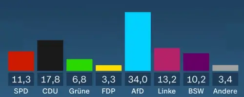 При этом опубликованы первые итоги опросов на выходе с избирательных участков – экзитполы. На основании этих данных можно говорить о том, что первое место занимает блок ХДС/ХСС Фридриха Мерца с результатом около 29 процентов голосов. Это примерно на 5 процентов больше, чем на прошлых выборах в Бундестаг.