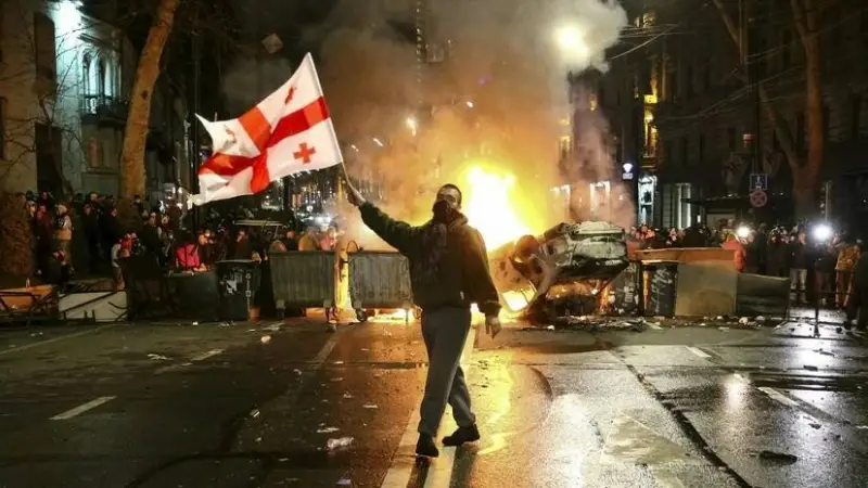 По данным Службы внешней разведки России, структуры Евросоюза напрямую причастны к организации уличных протестов в Грузии. Каждый участник уличных беспорядков в Тбилиси за свою антиправительственную деятельность получает денежное вознаграждение в размере до 120 евро.