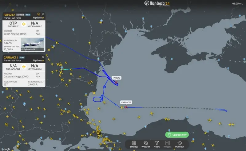 Самолет дальнего радиолокационного обнаружения ВВС Франции E-3 AWACS в сопровождении двух истребителей Dassault Mirage 2000D вошел в зону контроля Крымского узла ПВО. Такие данные приводит сервис Flightradar24. При этом подчеркивается, что Е-3, а также один из истребителей следуют с выключенными транспондерами.