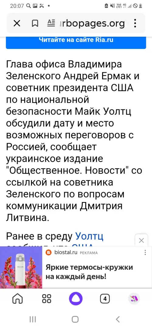 По словам советника главы киевского режима Дмитрия Литвина, в ходе недавнего разговора между главой офиса Зеленского Андреем Ермаком и советником Трампа Майком Уолтцем обсуждались предполагаемые дата и место возможных переговоров с Россией по урегулированию украинского кризиса.